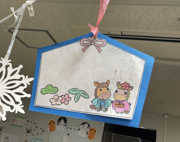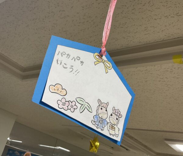 また、フロアには利用者様と職員の今年の抱負を絵馬に書いて飾っています。是非面会時にご覧ください。