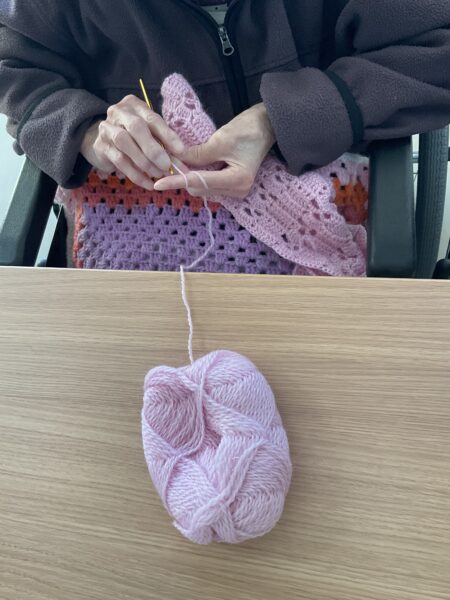 みなさんこんにちは。まだまだ寒い日が続きますが、メディコ春日井の梅も少しずつ咲き始め、春の訪れを感じる頃となりました。去年の12月頃から、編み物を始めたご利用者様がちらほらいらっしゃいます。久しぶりにカギ針と毛糸を持ち、懐かしさを感じておられる様子が見られています。