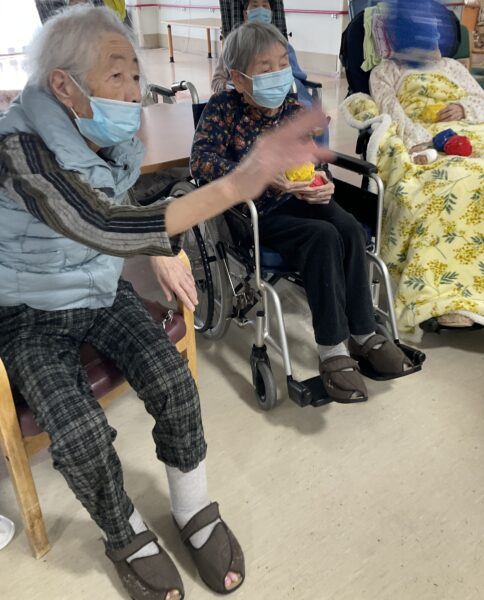 2月初めに節分イベントを行いました👹利用者の皆様は、豆を模したボールを鬼に向かって投げ、楽しまれていました。