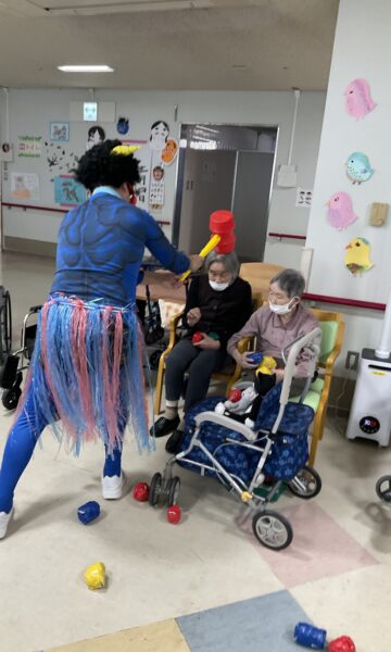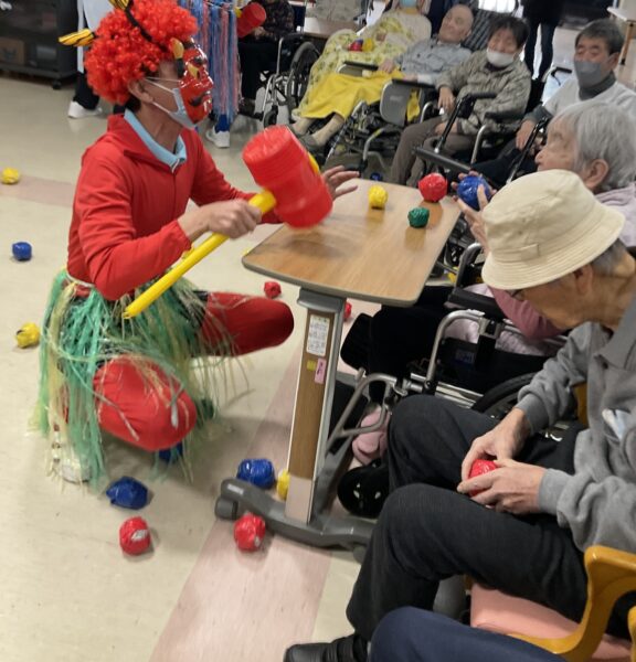 2月初めに節分イベントを行いました👹利用者の皆様は、豆を模したボールを鬼に向かって投げ、楽しまれていました。