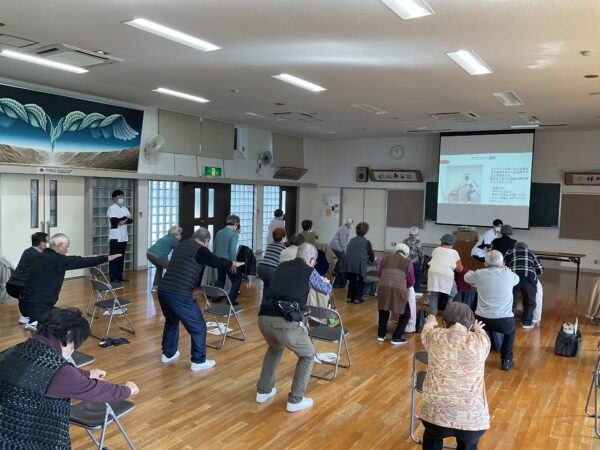R8年2月3日坂下公民館にて、地域住民の方々を対象に「フレイル予防」をテーマとした説明会と体操教室を開催しました。
