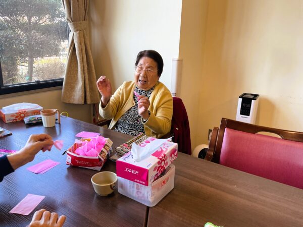 利用者様の服装も春色のものも増えて、「今日は桜色で来てみたよ」「スカーフを巻いて来た」などおしゃれに敏感な方々の会話も聞こえてきます。ぜひおしゃれしてお越しください♪
