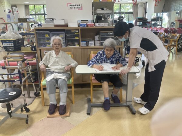 さて、本日も当施設では利用者様がリハビリを頑張っています。笑顔で楽しく取り組む方、一生懸命に集中して取り組む方など、身体機能に応じた運動療法を各々のスタイルで実施されています。私たちも利用者様の症状や個性に合わせて、出来るだけ受け入れやすい形でサービスを提供するよう心がけています。そんなリハビリ室での様々な場面の一部を、ぜひご覧ください。