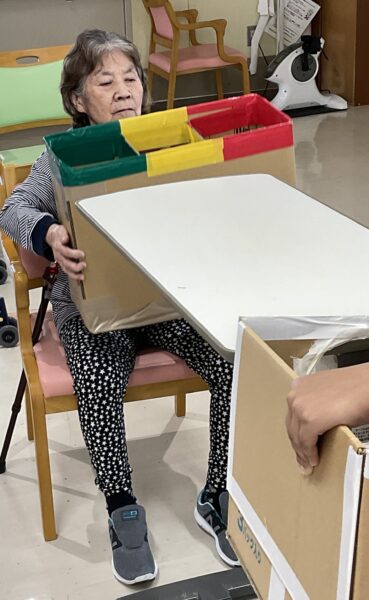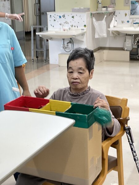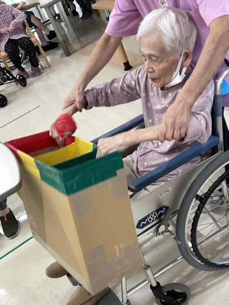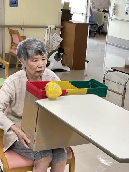 さて今回はSNSで話題になっていたレクリエーションを実際にやってみたのでその様子をお届けしたいと思います!今回実施したレクは、転がってきた様々な色のボールを対応する色の箱に入れるというもの。