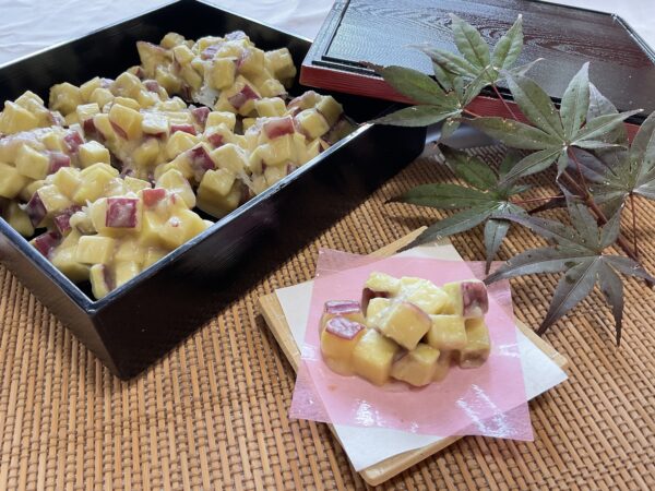 秋の味覚、生のサツマイモを使用しました。ご高齢の方でも召し上がりやすいよう生地を薄くし、サツマイモの風味や甘味をより感じられる一品にいたしました。