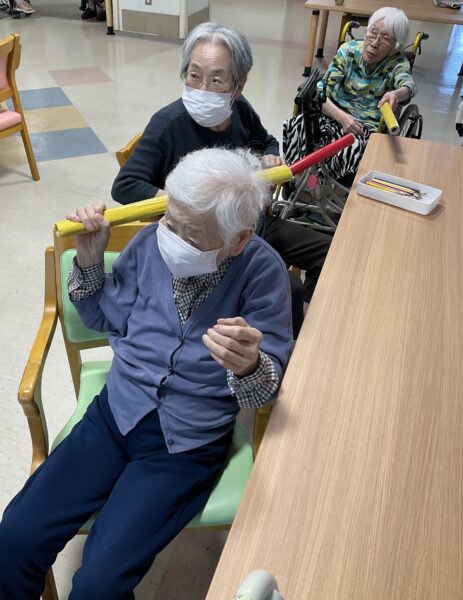 先日、3階ではフロアレクリエーションにて棒体操を行いました!リズムに合わせて上手に行えていました🎵