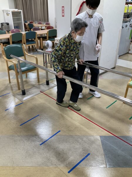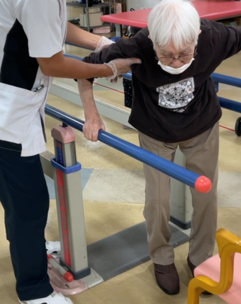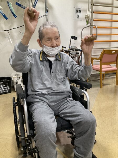 さて、本日も利用者様がリハビリを頑張っています。皆さん、時に笑顔で、時に集中して黙々と…そんなリハビリ室での様々な場面の一部を、ぜひご覧ください。