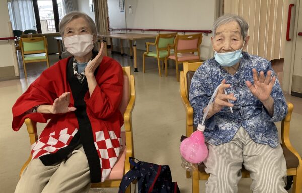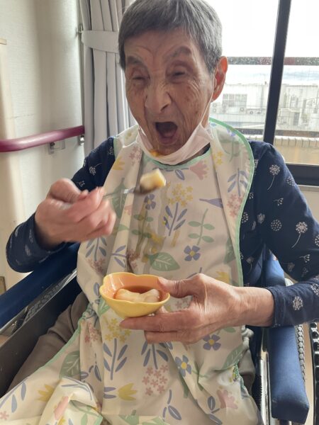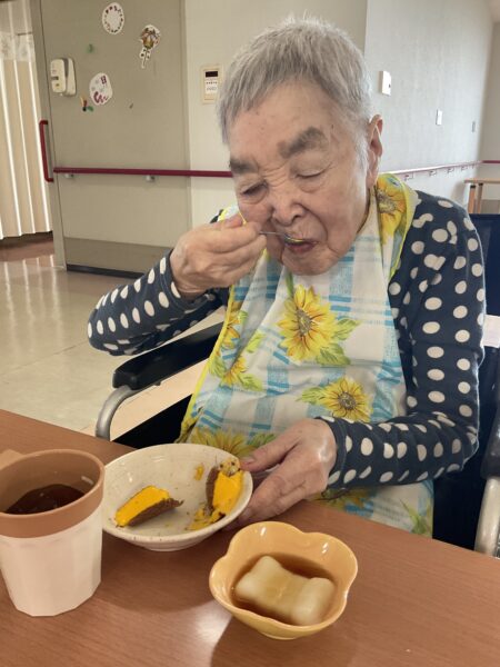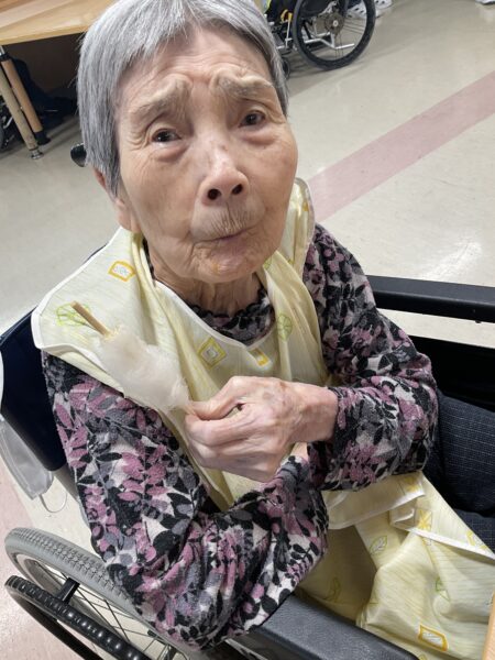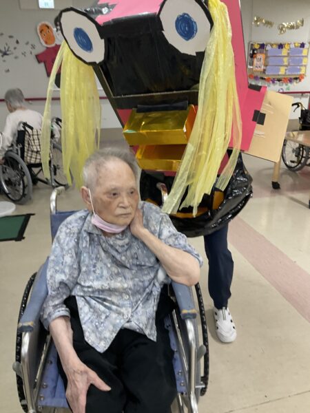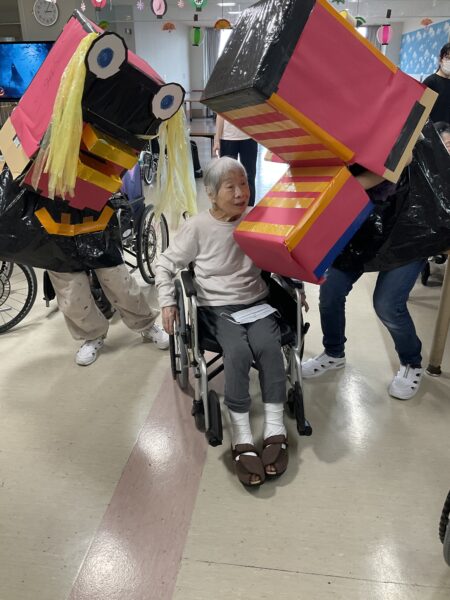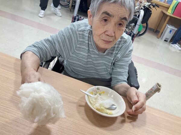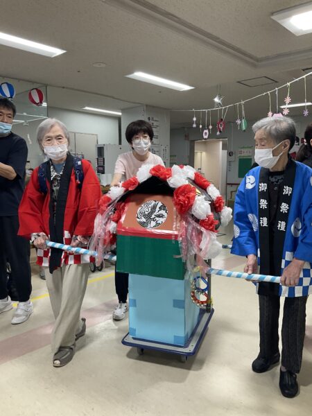 神輿を協力して担ぎ、おやつには祭りの雰囲気を味わえるよう綿菓子とみたらし団子風ムースが提供されました🍡😋皆さん「美味しい!」と感激されていました。